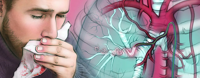 Bronchial Artery Embolization (BAE) is a minimally invasive procedure used to control and treat severe or recurrent bleeding from the lungs (hemoptysis). During the procedure, a catheter is guided into the bronchial arteries, and small particles or coils are injected to block the abnormal blood vessels causing the bleeding. BAE is highly effective, safe, and often avoids the need for surgery in life-threatening cases of hemoptysis.